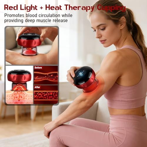 7-in-1 Cupping Kit for Massage Therapy: Experience comprehensive care combining traditional cupping, dynamic cupping, red-light therapy, heat therapy, massage, cellulite reduction, and gua sha (scraping) in one versatile device. Perfect for post-gym recovery, office breaks, and treatments anywhere.