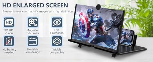 Compatible with all smartphones:This screen magnifier is specifically designed for most smartphones and is compatible with phones from most brands on the market.Such as iPhones 17/17Pro/16/15/14 Pro Max/13/12/12 mini / 11 pro max /11 / Xs Max/XR/X/8/8 Plus/7/7 Plus/6s Plus, Galaxy S10/Note 10/9/8/7/6/5 Edge Android phone smartphones. No complicated settings are required; just plug it in and instantly unlock a world of big-screen entertainment