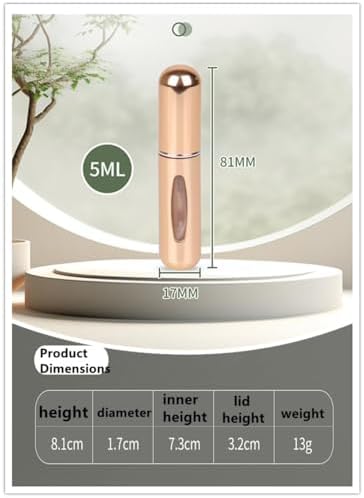 Compact & Portable 5ml Capacity Small enough (81mm×17mm) to slip into pockets, handbags or travel toiletry bags—perfect for on-the-go touch-ups of perfume, cologne or light cosmetics (not for thick liquids)