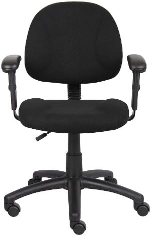 Offering built-in lumbar support, the Boss Black Deluxe Posture Chair W/ Adjustable Arms is an excellent choice for any executive. The five-star nylon base provides stability for the unit, which measures 25″ W x 25″ D x 35-40″ H. The chair can easily be personalized by adjusting the arms, setting the pneumatic seat to your desired height and moving the back to the appropriate depth. With hooded double-wheel casters and a low weight of 30 pounds, users won’t have any trouble operating the seat. As an added benefit, the chair has thick pads and a waterfall seat that is easy on the legs. The seat fabric also comes in red, gray and blue.