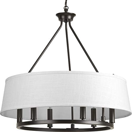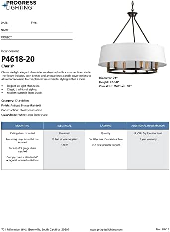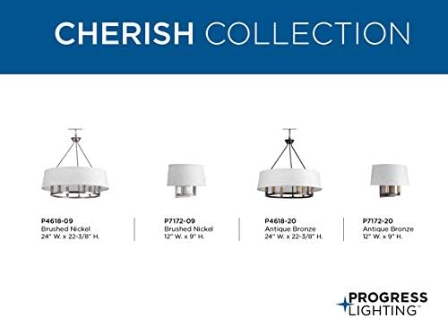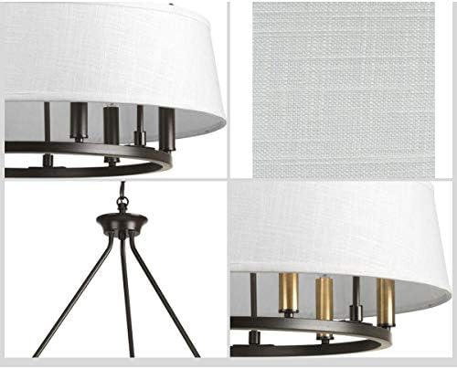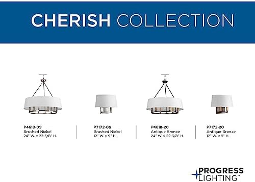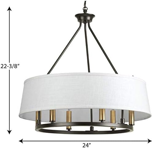 Fall in love with a fresh chandelier design from the Cherish Collection. A crisp white summer linen shade creates a beautiful muted glow. Mixed-metal styling is featured with a circular frame coated in a handsome antique bronze finish accented with a choice of golden brass or antique bronze light bases (both included). Compatible with dimmable bulbs.