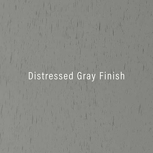 FARMHOUSE FLAIR: With a hand-rubbed, distressed gray finish, this wall cabinet adds a touch of modern farmhouse style to any space. The metal hardware features a complementary distressed brass finish for an added vintage charm.