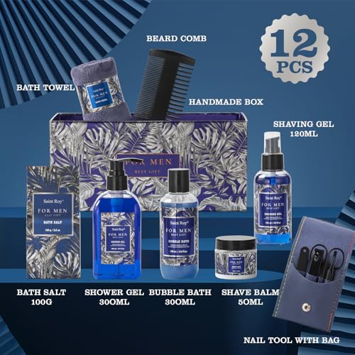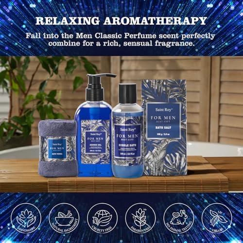 Men Gifts for Birthday THE BEST CHOICE. Men Perfumed Fragrance Breathe in the fresh and cleansing fragrance to create a relaxing, renewing environment. Our Mens Bath & Beard Spa Gift Crafted with moisturizing Shea Butter and nourishing Vitamin E in addition to many essential oil, our men’s self-care kit lets you unwind and relax.A gift-ready packaging. Our gift basket for men also has a gift note card for you to personalize it.Suitable for Christmas, birthdays, Mothers Day, or any occasion, This men gift basket it’s the perfect way to express your love and appreciation