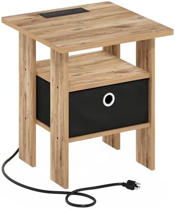 CHARGING PORTS + STORAGE BIN: This side table with charging port integrates AC, USB, and Type-C charging with a pull-out storage bin for items like phones, tablets, e-readers, headphones, and remotes so the night stand powers devices neatly while hiding clutter and keeping essentials within reach