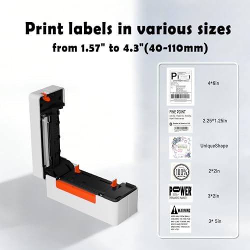 Print Various Sizes:This Print direct thermal labels ranging from 1.57 to 4.3 inches in width.It makes perfectly for various of label types,whether it’s 4×6-inch shipping labels or custom-sized product tags—to meet diverse labeling needs.