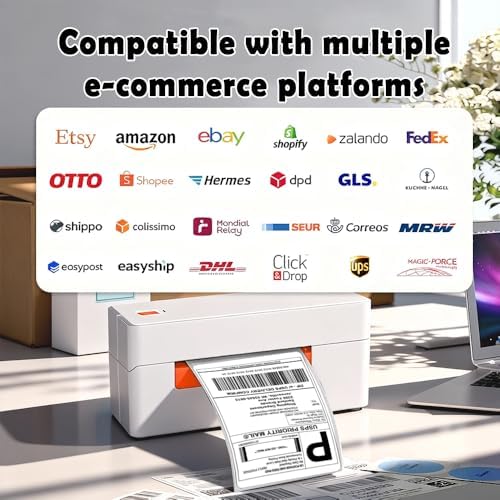 Compatibility with Multiple Platform:This Bluetooth shipping label printer can work with virtually major e-commerce and shipping platforms, including Amazon, Ebay,UPS, Esty, PayPal,etc.It is widely used for school, home and office.