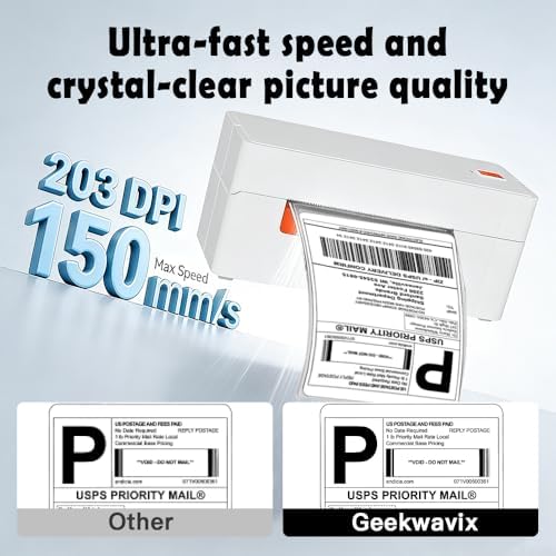 Flexible Simple Printing: The GeekWavix thermal label printer is engineered for advanced direct thermal technology that ensures it always prints flexibility and convenience. Enjoy high-speed of 60 X 4×6″ labels per minute and with powerful versatility.