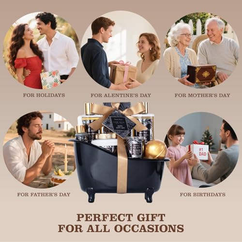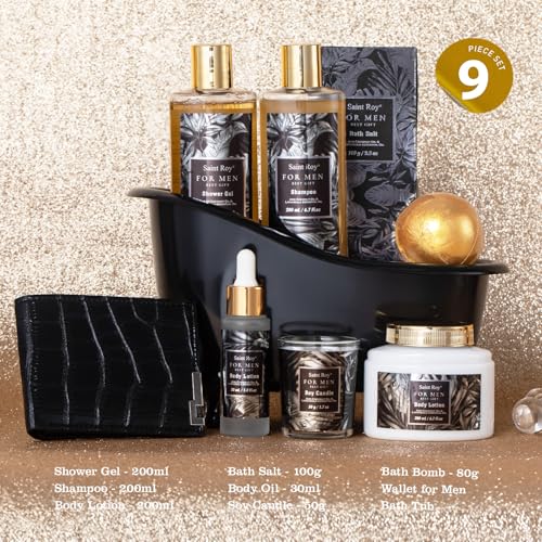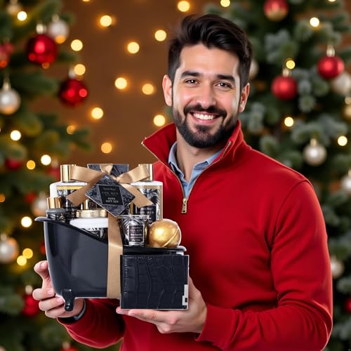 Bath Gift Set and Shower Gift Basket for MEN : Indulge in Nature’s Scents- Featuring MENS PERFUME Scents Lotion fragrances, This gift baskets for men It contains most of the gifts that men like. transporting you to a Fresh perfume paradise. Our Men’s Shower Basket packs the ultimate set of Men’s Self-Care Products, including Shampoo, Shower Gel, Scents Candle, Man Perfume Scents Body Lotion, Bath Salt, Handmade Gold Ball Bath Bomb, Bath and Body Oil, MEN’S PU Leather Wallet and wrapped in a Cool Bathtub Style Basket. It also has a gift note card for you to personalize words on it