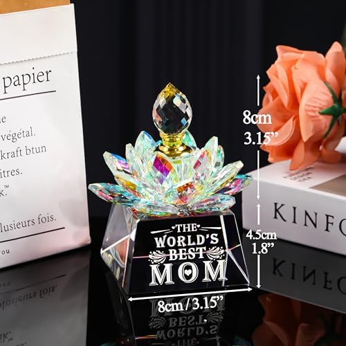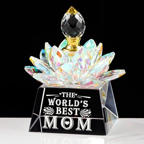 『Perfume Bottle Gifts for Mom』: The Perfume Bottle is designed in the shape of lotus, and laser engraved with words and patterns on the crystal ornament, which can show your appreciation and affirmation for mom.