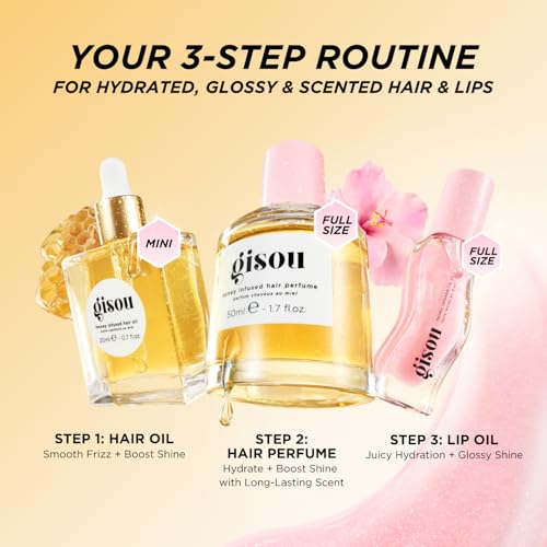Complete set includes Honey Infused Hair Perfume Wildflower Honey (50ml), Lip Oil in Watermelon Sugar, and iconic Hair Oil (20ml) for on-the-go beauty care.