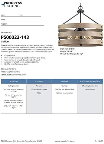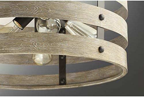 Select the perfect farmhouse décor with a pendant light from the Gulliver collection. Three circular bands wrap together like a country basket held by a metal chain. The bands are coated in a weathered gray driftwood faux wood finish with graphite metal details for rustic character. Ideal for vintage filament bulbs (not included). Compatible with dimmable bulbs.