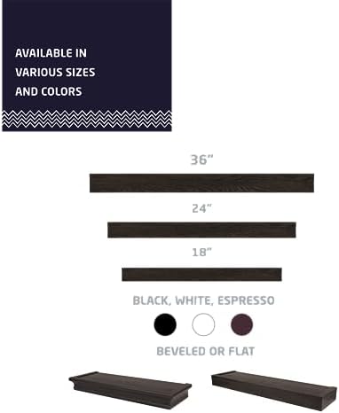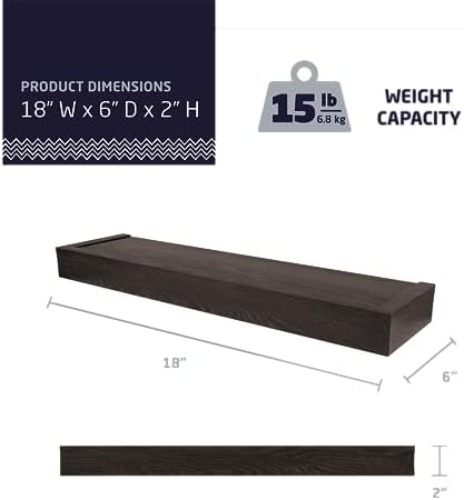 What has two thumbs and can hang anything? You do. HIGH & MIGHTY floating shelves are the quickest and easiest decorative shelf you will ever install. This innovative technology comes with a template and level to help you find the exact position to perfectly install the wall hangers. Then, simply push in the hangers with your thumbs in the position indicated, slide on the shelf, and start decorating. The look you want, the strength you need, and the simplicity to get it done right. Safely hang plants, photos, books, artwork, candles, trophies, kitchen containers, collectables, vases, art and craft supplies, reed diffusers, and other decorations up to 15 pounds. HIGH & MIGHTY floating shelves come in a variety of styles and finishes to compliment modern, rustic, traditional, and transitional décor. Beautifully organize your bathroom, office, entryway, hallway, mudroom, bedroom, living room, dorm room, kids’ room, closet, or craft room in a flash. Already assembled, the floating arrives ready to mount to your wall. Installation instructions can be found on the back of the box, but if you recycled your box too soon, installation instructions and videos can also be found online. Removes easily with a flathead screwdriver, leaving holes barely bigger than a pin. Dimensions on Wall: 18” W x 2” H x 6” D