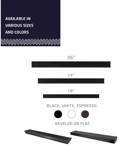 What has two thumbs and can hang anything? You do. HIGH & MIGHTY floating shelves are the quickest and easiest decorative shelf you will ever install. This innovative technology comes with a template and level to help you find the exact position to perfectly install the wall hangers. Then, simply push in the hangers with your thumbs in the position indicated, slide on the shelf, and start decorating. The look you want, the strength you need, and the simplicity to get it done right. Safely hang plants, photos, books, artwork, candles, trophies, kitchen containers, collectables, vases, art and craft supplies, reed diffusers, and other decorations up to 25 pounds. HIGH & MIGHTY floating shelves come in a variety of styles and finishes to compliment modern, rustic, traditional, and transitional décor. Beautifully organize your bathroom, office, entryway, hallway, mudroom, bedroom, living room, dorm room, kids’ room, closet, or craft room in a flash. Already assembled, the floating arrives ready to mount to your wall. Installation instructions can be found on the back of the box, but if you recycled your box too soon, installation instructions and videos can also be found online. Removes easily with a flathead screwdriver, leaving holes barely bigger than a pin. Dimensions on Wall: 36” W x 2” H x 6” D