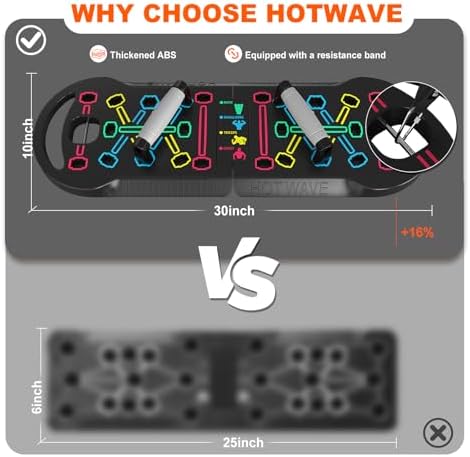 【Addition to the Gym】The HOTWAVE Push-up board is a great addition to the gym. You simply insert the handle into the position of the push-up board and you will work the right muscle group. So you can exercise your body at any time to build muscle strength. It can act as a trainer to your workouts.