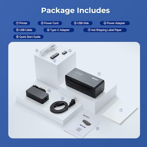 ✅【Multi-Platform Compatibility】This shipping label printer compatible with major platforms including eBay, Shopify, Amazon, Etsy, UPS, USPS, and FedEx. Easily print text, barcodes, QR codes, and forms using preset templates for home or business use. Note: This label maker supports black-and-white printing only. For color labels, purchase compatible thermal color label paper separately