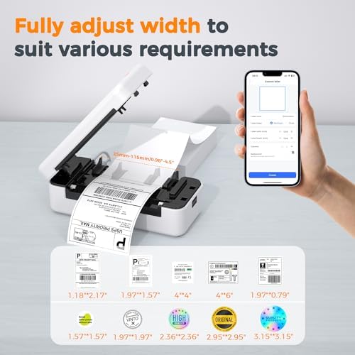Wide Label Compatibility – Versatile and adaptable, this printer supports label widths from 0.98” to 4.4” (25mm-112mm), making it ideal for shipping labels, barcodes, and more. No matter your label needs, this printer has you covered.