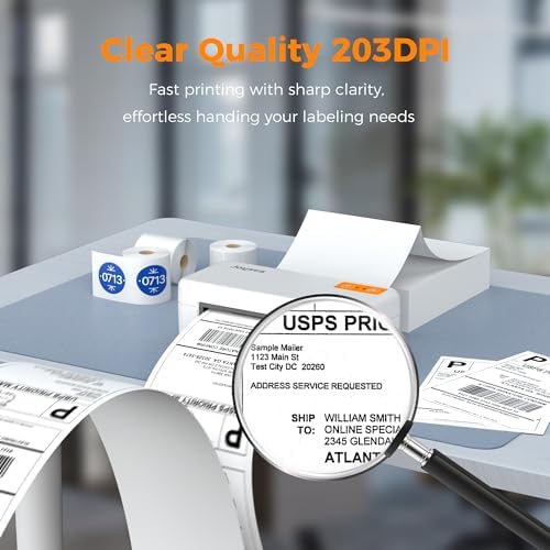 High-Quality Thermal Printer – This label printer with a 203 DPI thermal print head, delivering crisp and clear shipping labels. Perfect for Amazon FBA, Shopify orders, and UPS shipments, ensuring your labels look sharp and professional every time.
