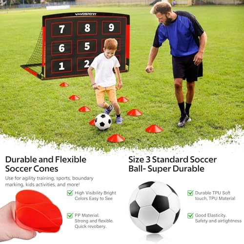 Level Up Skills & Supercharge Fun: This professional-style soccer coaching equipment features a removable 9-zone target net and training cones, perfect for solo or group shooting drills in outdoor settings. Keep practice exciting and play anytime, offering endless hours of entertainment for players of all ages and skill levels. To develop teamwork, motor skills, and coordination, it’s the ultimate way to ignite a passion for soccer while building fundamental skills in young players!