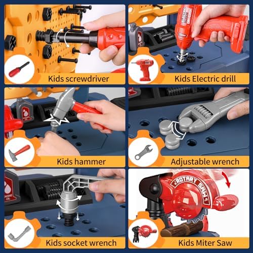 【Safe Materials】Toy tool bench is made of high-quality ABS plastic, more durable and more environmental. Easy to assemble and disassemble, no odor, smooth surface, no sharp edges and children can play safely.