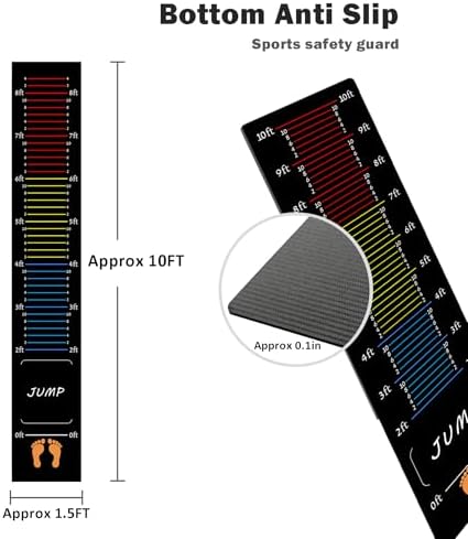 Clear & Accurate Measurement Marks: Our standing long jump mat features clear, easy-to-read measurement lines from 0–10 ft for precise distance tracking. The broad jump mat is 0.1 inches thick and is perfect for kids, teens, and adults for training or home workouts
