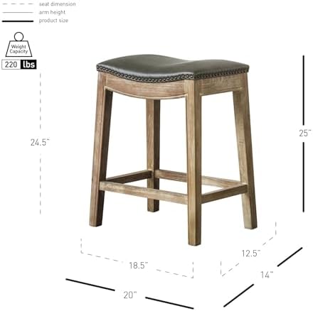 Stylish, Sturdy, comfortable, and affordable. This 24.5″ height counter stool features nail head trims and spacious bonded leather seat.