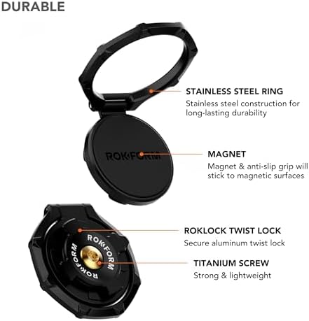 This is not your girlfriend’s cell phone ring stand, but she will definitely want one! Simply twist and lock onto any one of our twist lock iPhone cases, Galaxy cases, or Pixel case for instant control of your phone and easy viewing of your favorite stuff to watch, see or do. Once you are done watching, fold the stand down and instantly stick your phone to magnetic surface thanks to the built-in N52 Neodymium magnet. Easily twist it on and off for wireless charging. The ROKFORM Magnetic Sport Ring/Stand Grip is constructed of stainless steel, titanium, aluminum, and fiber-reinforced polymer, so it’s up for the toughest challenge and will look good doing it.