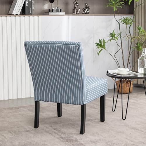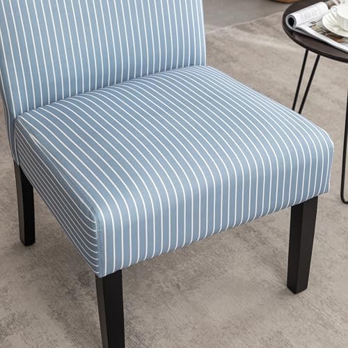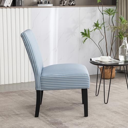 Elegant Blue Stripe Pattern: The fabric upholstery features a chic blue stripe design, adding a stylish and contemporary touch to any room.