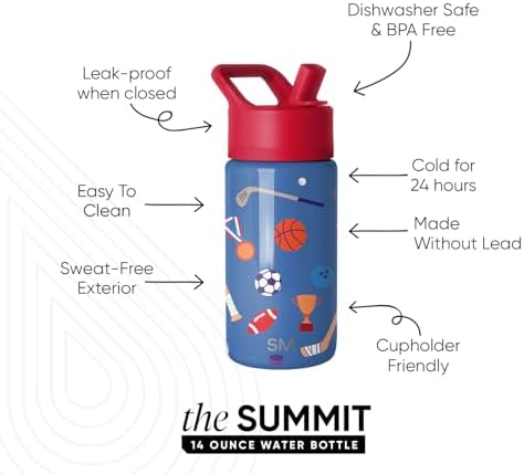 The Simple Modern Summit with Straw Lid for Kids is the perfect vessel for toddlers and youngsters. This dishwasher safe vessel comes with a leak proof straw lid. Double walled, vacuum insulated 18/8 stainless steel keeps your child’s water or milk cold for hours.