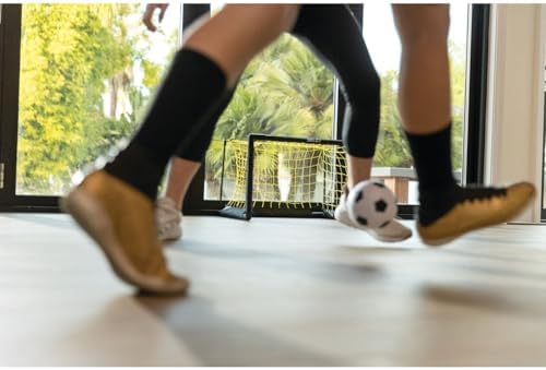 The Pro Mini Soccer goal was built durable enough to hold up against long hours of play. The easy to assemble frame lets you build and breakdown quickly and store away anywhere in the house
