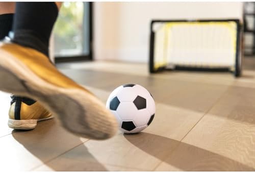 A 5” soft foam ball is included for fun playing. Soft enough to kick and not damage the house. It’s lightweight enough to play with easy touches, but durable for hard hits