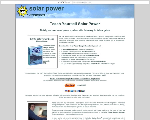 Save Thousands By Teaching Yourself All About Solar Power. Comprehensive Manual By Industry Expert Guides You Through The Process. Includes All Resources Necessary – Spreadsheets, Insolation Charts, Worked Examples.