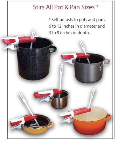 Versatile and Convenient: The smart stirrer self-adjusts to pots and pans 6 – 12 inches in diameter and 3 – 9 inches in depth. Its compact and low-profile design ensures easy storage alongside kitchen utensils.