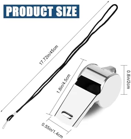 Whistle sound is loud,frequency is high,long distance.Food grade stainless steel,strong and durable.Smooth surface,not scratch your mouth.Easy to carry,whistle with lanyard can also be worn around the neck.The Whistle good for coaches,teachers referees,directing traffic,outdoor adventure sports ect.