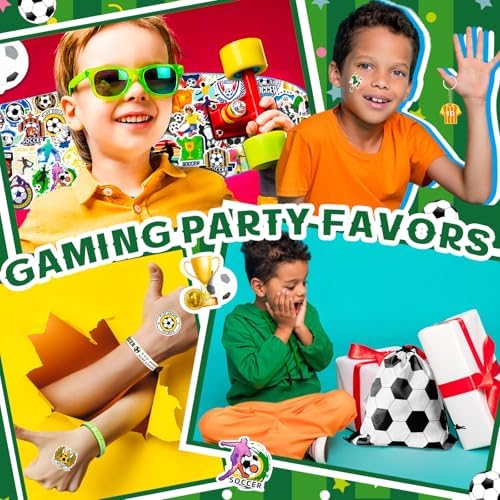Fun and Interactive Party Experience: These Soccer-themed party favors are not only great for decorations but also provide interactive fun for guests. The mini Soccers, slap bracelets, and Soccer stickers can be used during the party for games, challenges, or just to keep everyone entertained. It’s a perfect way to engage kids and make the celebration even more exciting!