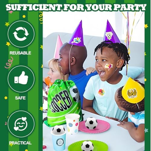 Nice Workmanship: These Soccer birthday party supplies are made with high-quality materials. The Soccer drawstring bag is crafted from durable Oxford cloth, making it lightweight, foldable, and strong. It’s easy to clean and can be reused multiple times. The colors and designs are vibrant and well-coordinated, ensuring the items look great and can be used for a long time.