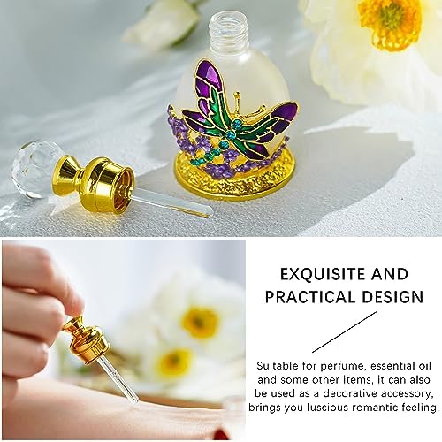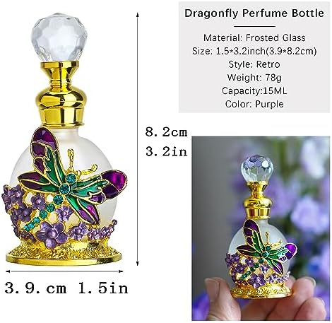 Vintage Frosted Bottle: These decorative perfume bottles are crafted from high-quality glass,surrounded by purple dragonfly and flowers, showcasing a timeless vintage aesthetic that adds charm to any space.